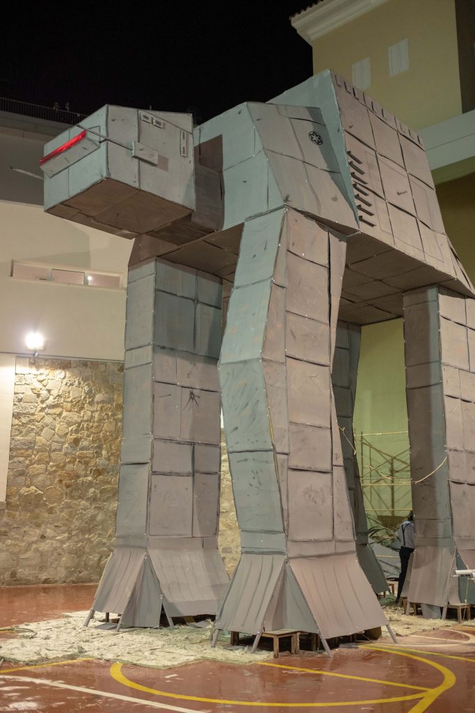 El AT-AT, un vehículo de la famosa saga de ficción ‘Star Wars’, fue la figura quemada en el patio de Moncloa en la falla de 2019. Este año se celebraba el 40 aniversario de su aparición en la gran pantalla. Los más experimentados la alabaron diciendo que era una de las más conseguidas de los últimos años. El trabajo y el esfuerzo de todo el equipo de la falla, así como de los Colegiales, hizo posible construir una de las piezas más difíciles que se recuerdan.