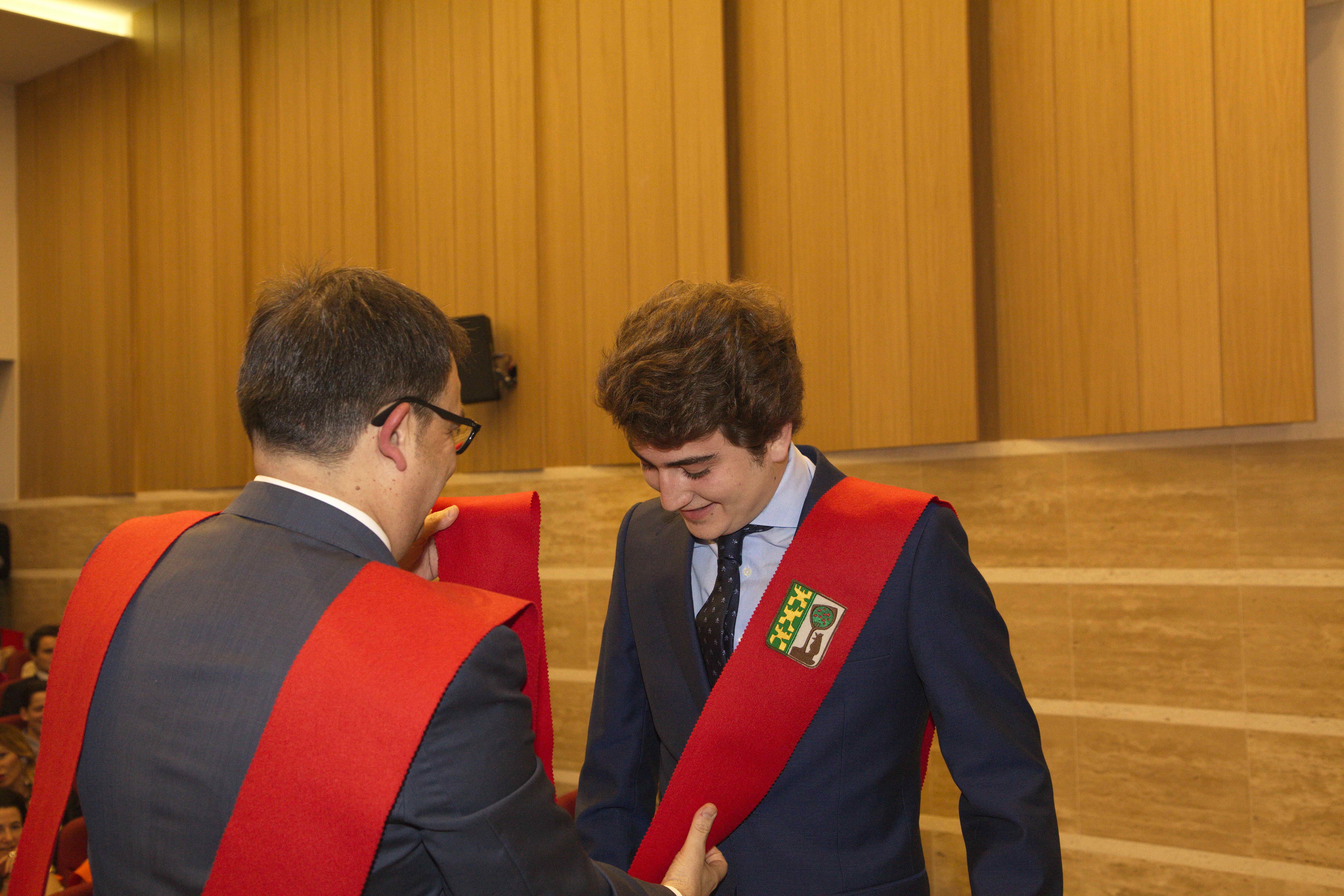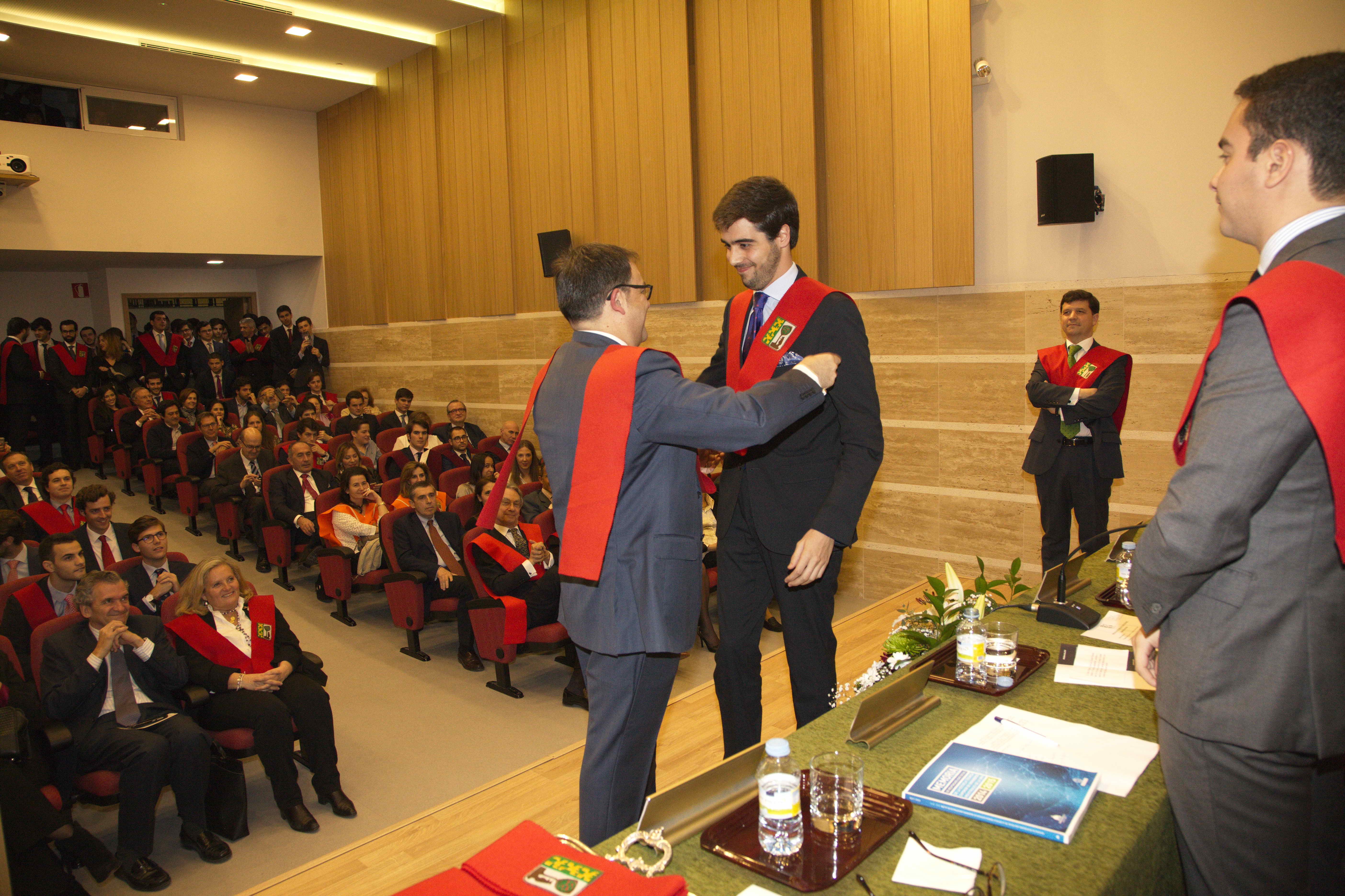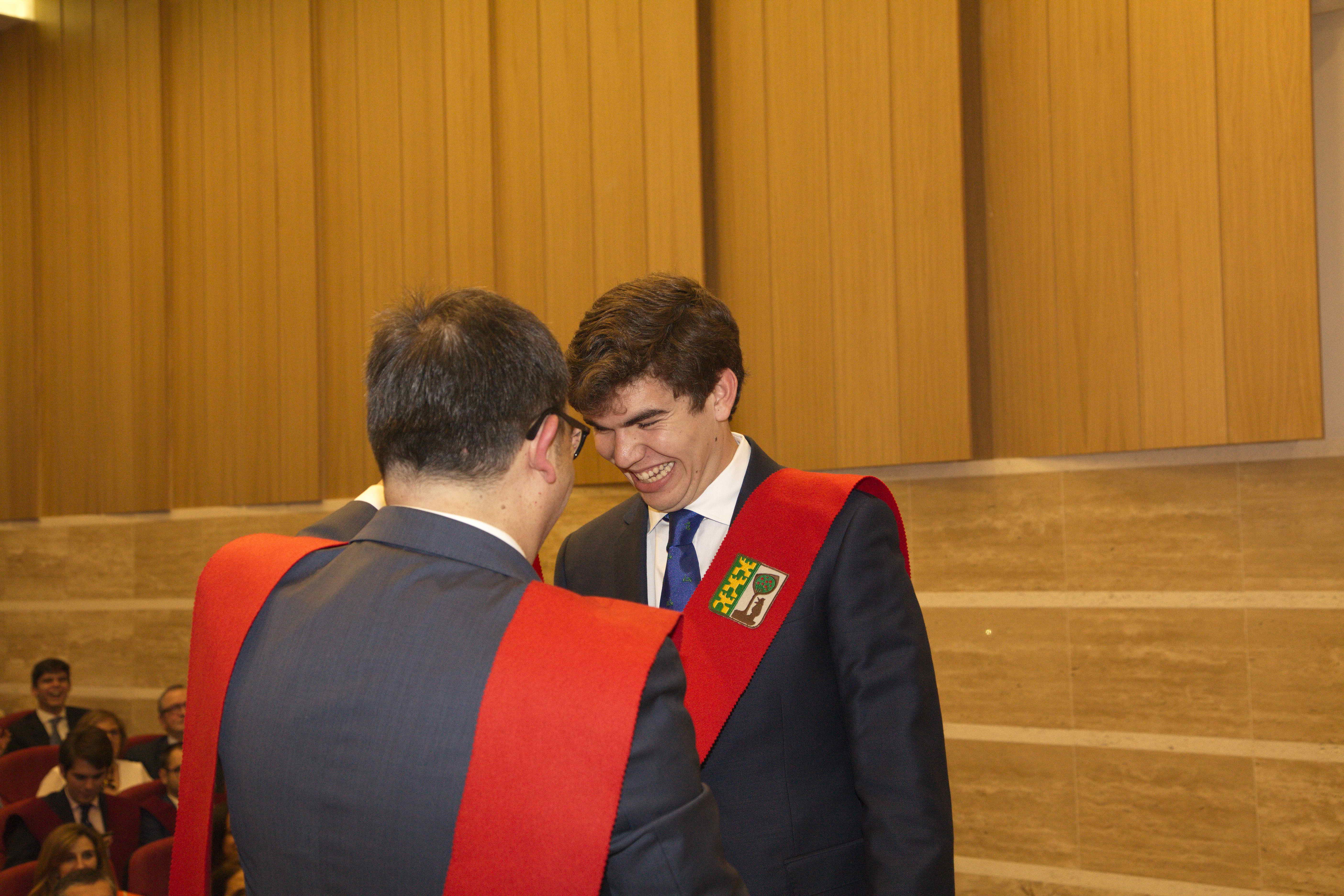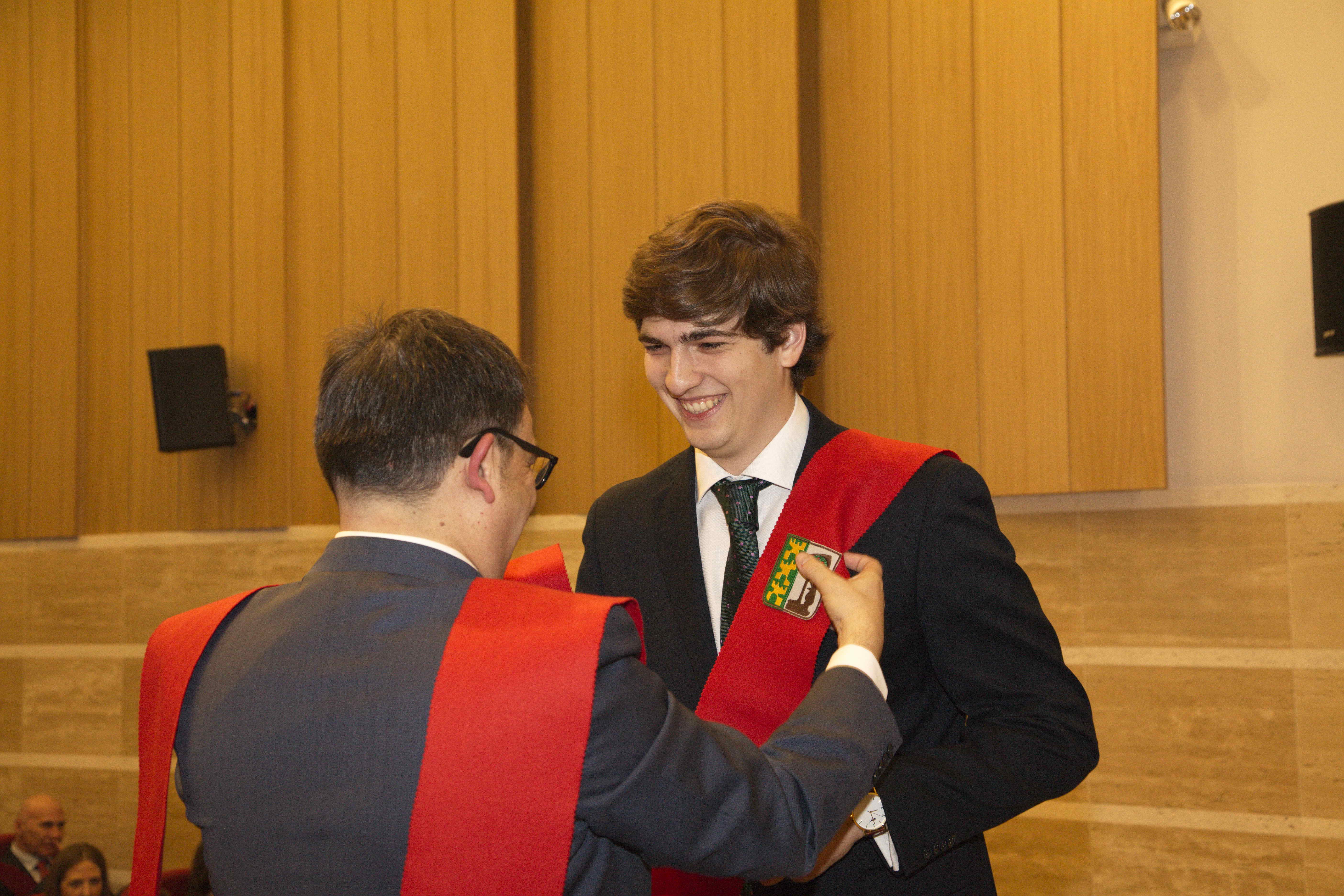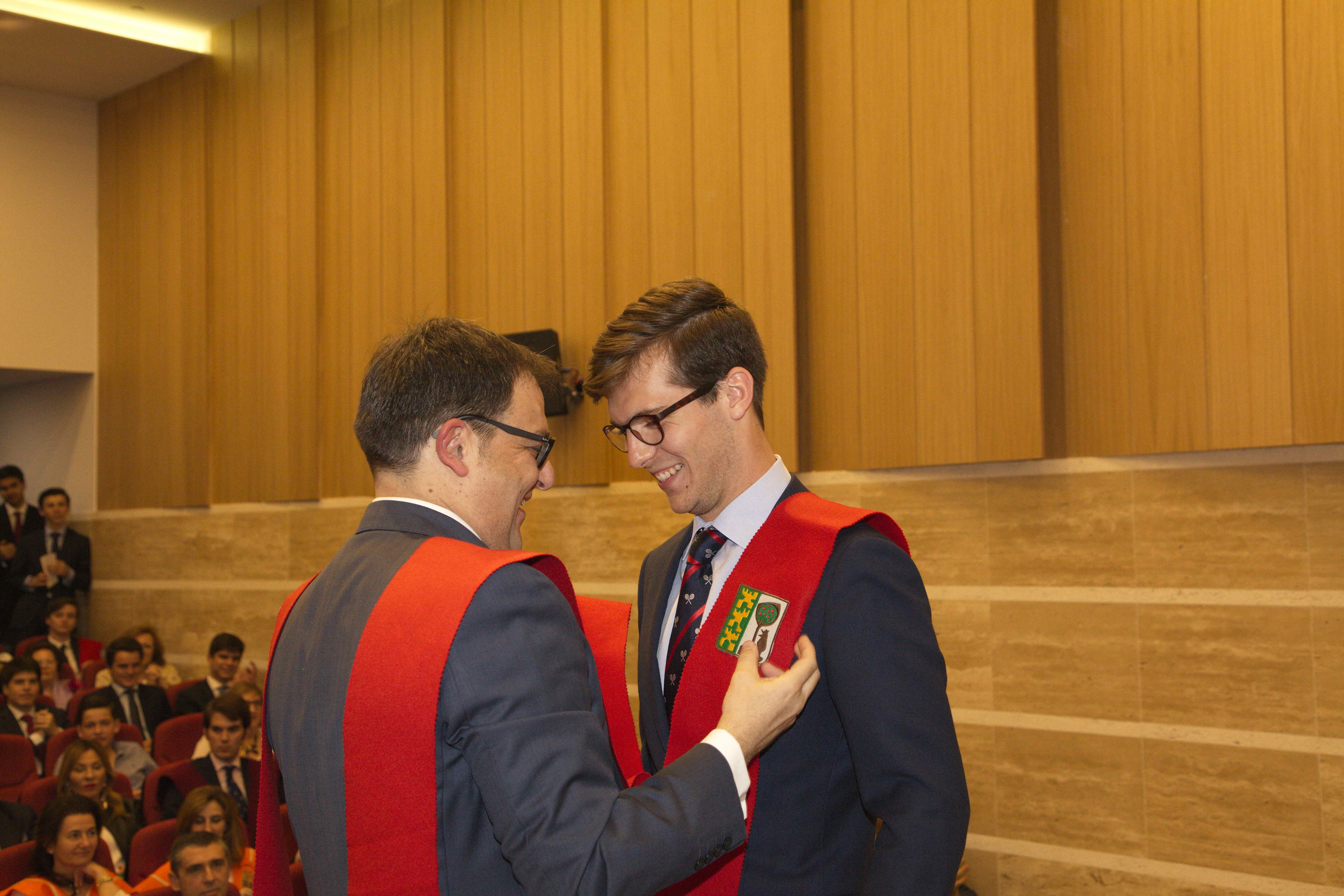 El pasado 11 de marzo celebramos uno de los eventos más importantes del Colegio Mayor: la imposición de becas. Con ella Moncloa reconoció el compromiso de aquellas personas con los valores de esta institución en los últimos años. La celebración tuvo lugar en el salón de actos y contó con la presencia honorífica de D. Emilio Mínguez Torres (director de la Escuela de Industriales, UPM). En su discurso reflexionó acerca de los valores universitarios y la importancia de preservarlos en el ambiente estudiantil. Tras la ponencia de nuestro director Luis Muncharaz, y el discurso del decano del Colegio Mayor, Javier Cabrera, se procedió a la concesión de las becas a 14 colegiales y otras 4 a personas vinculadas a Moncloa. Además, los participantes más sobresalientes recibieron los diplomas honorarios del programa «Mentoring» dirigido por el grupo GESPLAN.