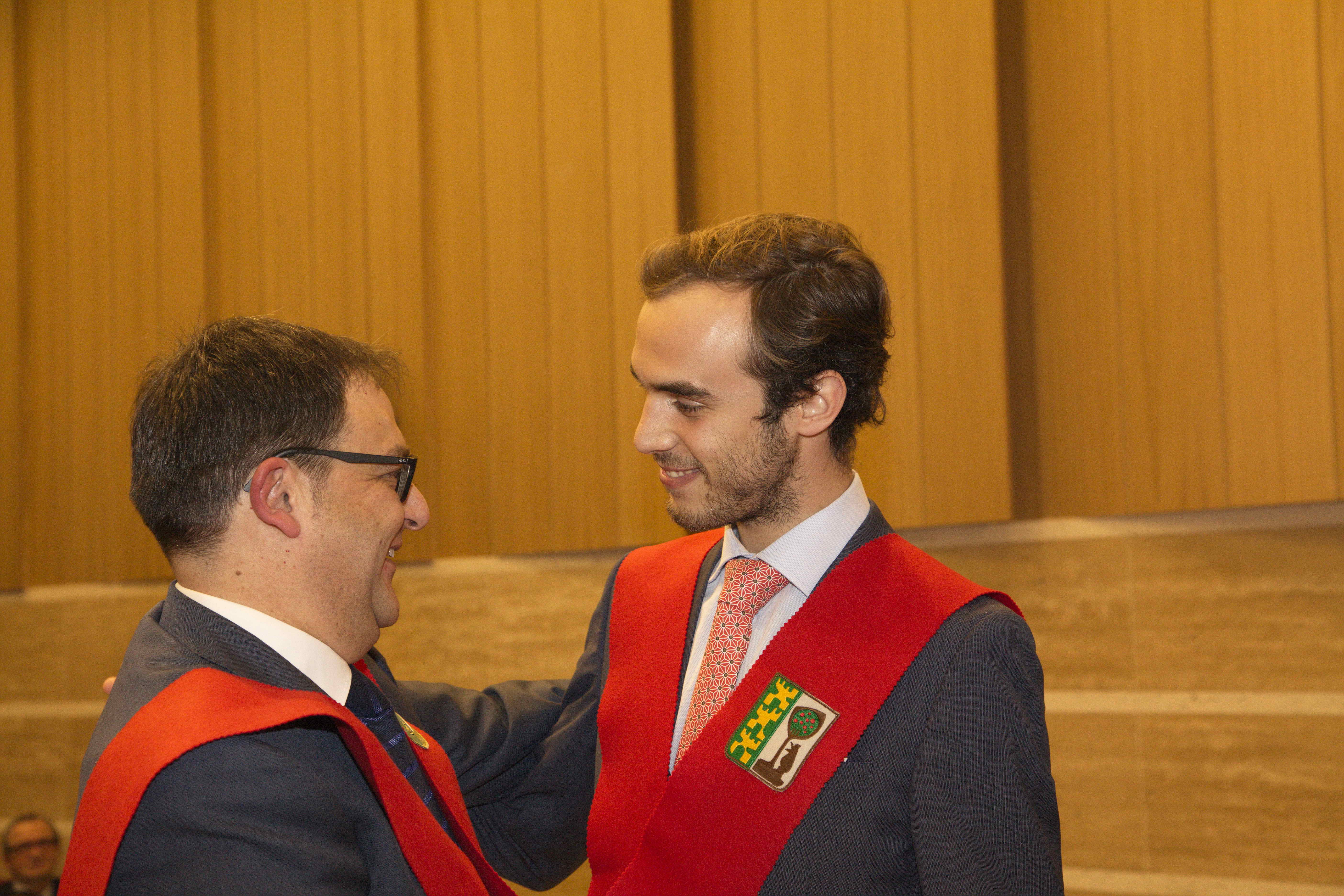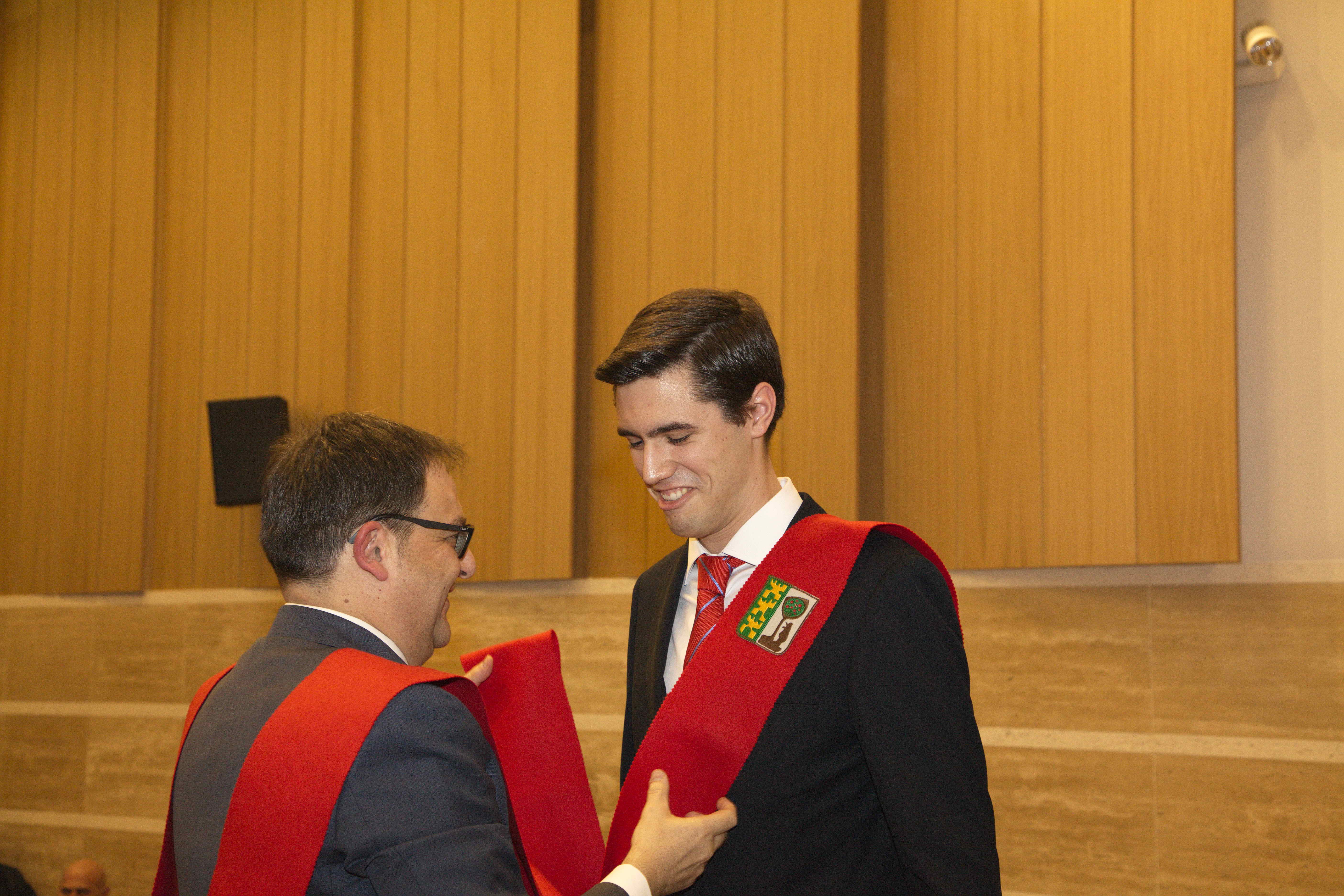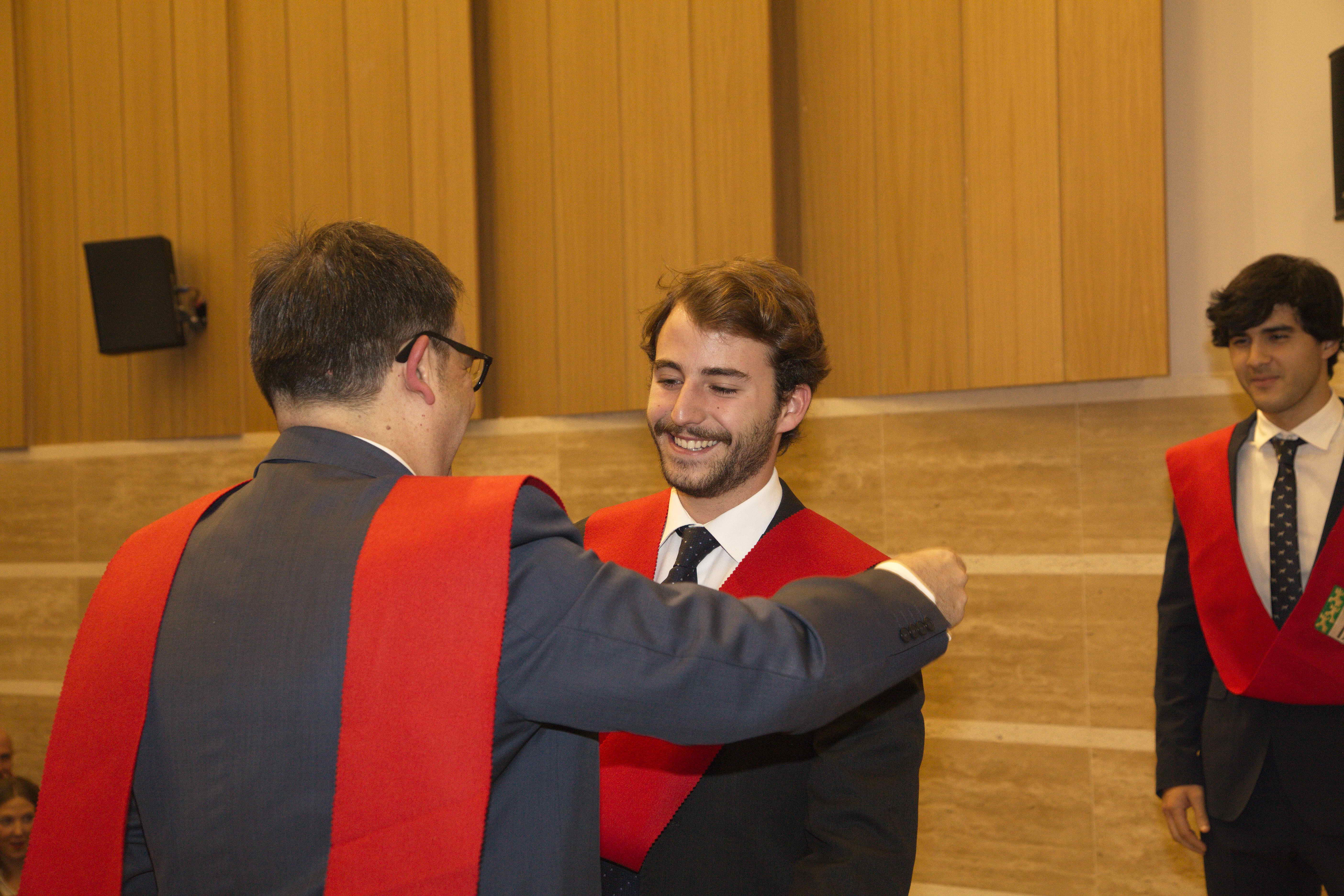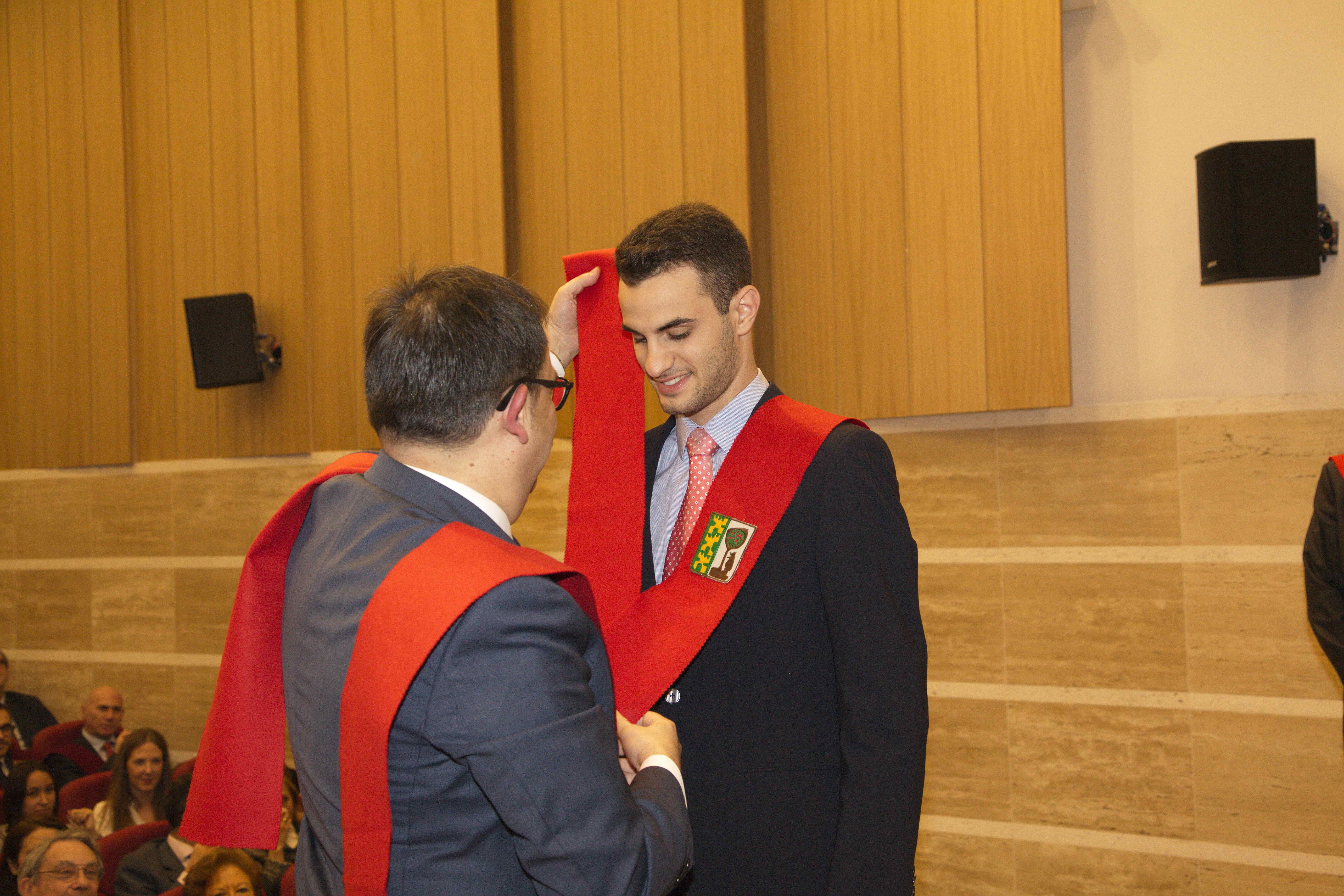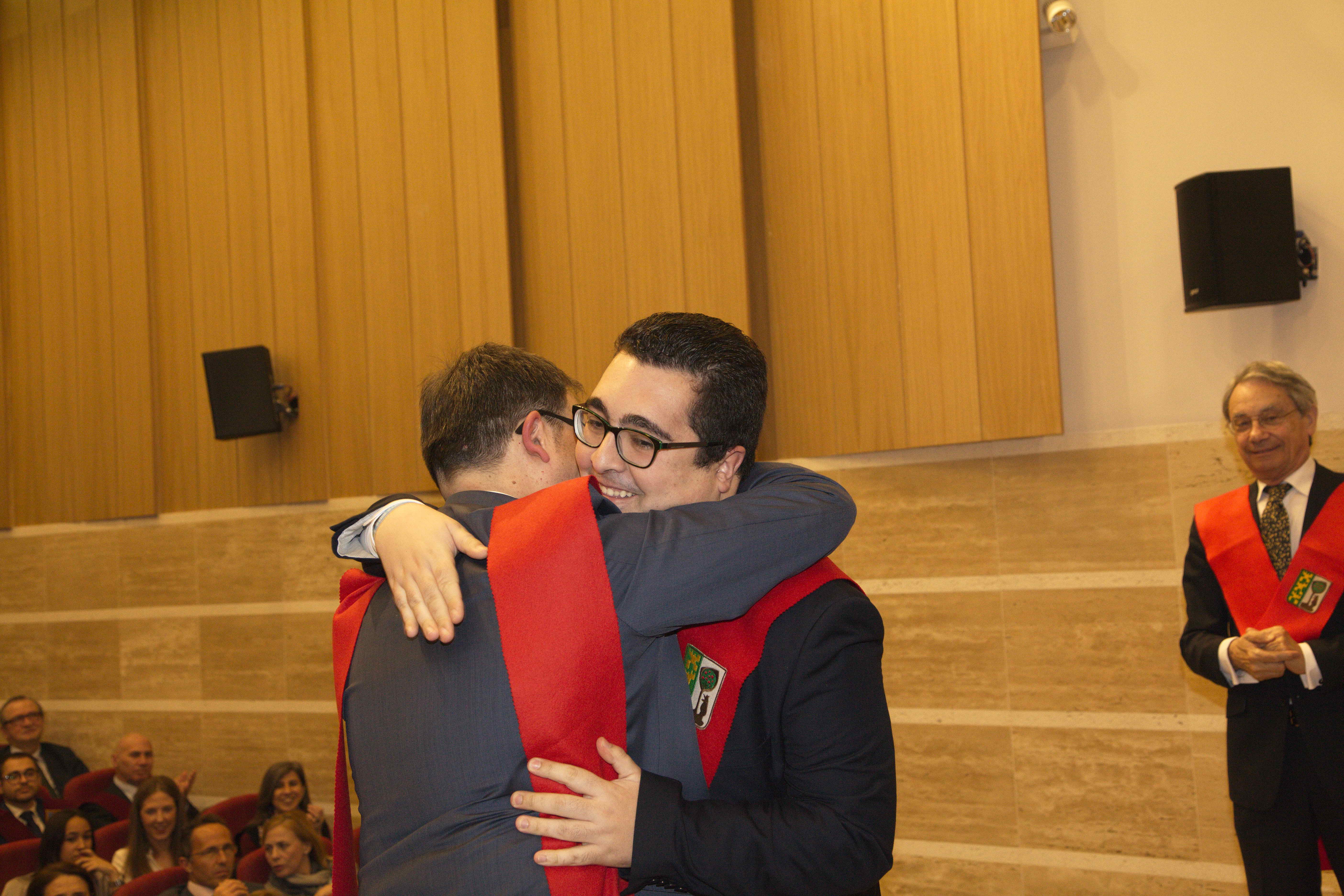 El pasado 11 de marzo celebramos uno de los eventos más importantes del Colegio Mayor: la imposición de becas. Con ella Moncloa reconoció el compromiso de aquellas personas con los valores de esta institución en los últimos años. La celebración tuvo lugar en el salón de actos y contó con la presencia honorífica de D. Emilio Mínguez Torres (director de la Escuela de Industriales, UPM). En su discurso reflexionó acerca de los valores universitarios y la importancia de preservarlos en el ambiente estudiantil. Tras la ponencia de nuestro director Luis Muncharaz, y el discurso del decano del Colegio Mayor, Javier Cabrera, se procedió a la concesión de las becas a 14 colegiales y otras 4 a personas vinculadas a Moncloa. Además, los participantes más sobresalientes recibieron los diplomas honorarios del programa «Mentoring» dirigido por el grupo GESPLAN.