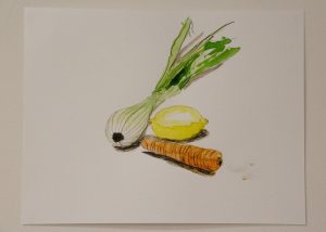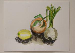 Los modelos fueron distintas frutas y hortalizas, y es necesario resaltar que ninguno de los participantes había pintado, con ninguna técnica, anteriormente.